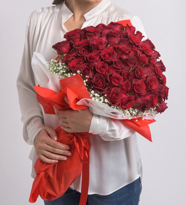 59 adet kırmızı gül buketi